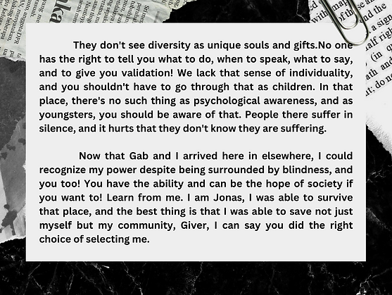 I was also satisfied with how I internalized to be like Jonas on this speech,